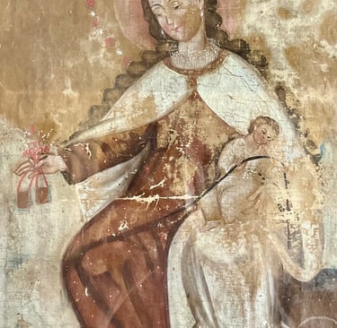 Entre las diversas advocaciones de la Virgen, el "anónimo" canalizó su arte en la representación de la Virgen del Carmen, como una ofrenda simbólica que visualmente expresa su protección a través del uso del escapulario, resultando ser una respuesta de amor hacia ella.