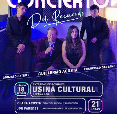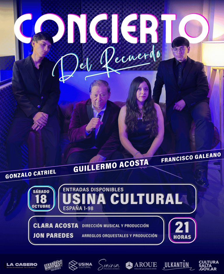 El próximo sábado 18 de octubre a las 21 horas, la Sala “Macacha Güemes” de la Usina Cultural será el punto de encuentro para los amantes de la música romántica con el espectáculo “Concierto del Recuerdo”, una propuesta de la productora Soníria que invita a revivir las melodías que marcaron generaciones.
